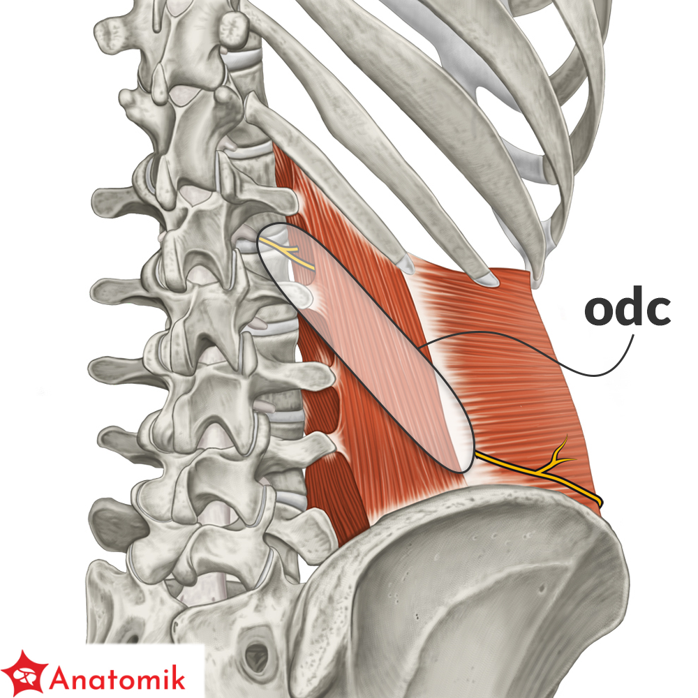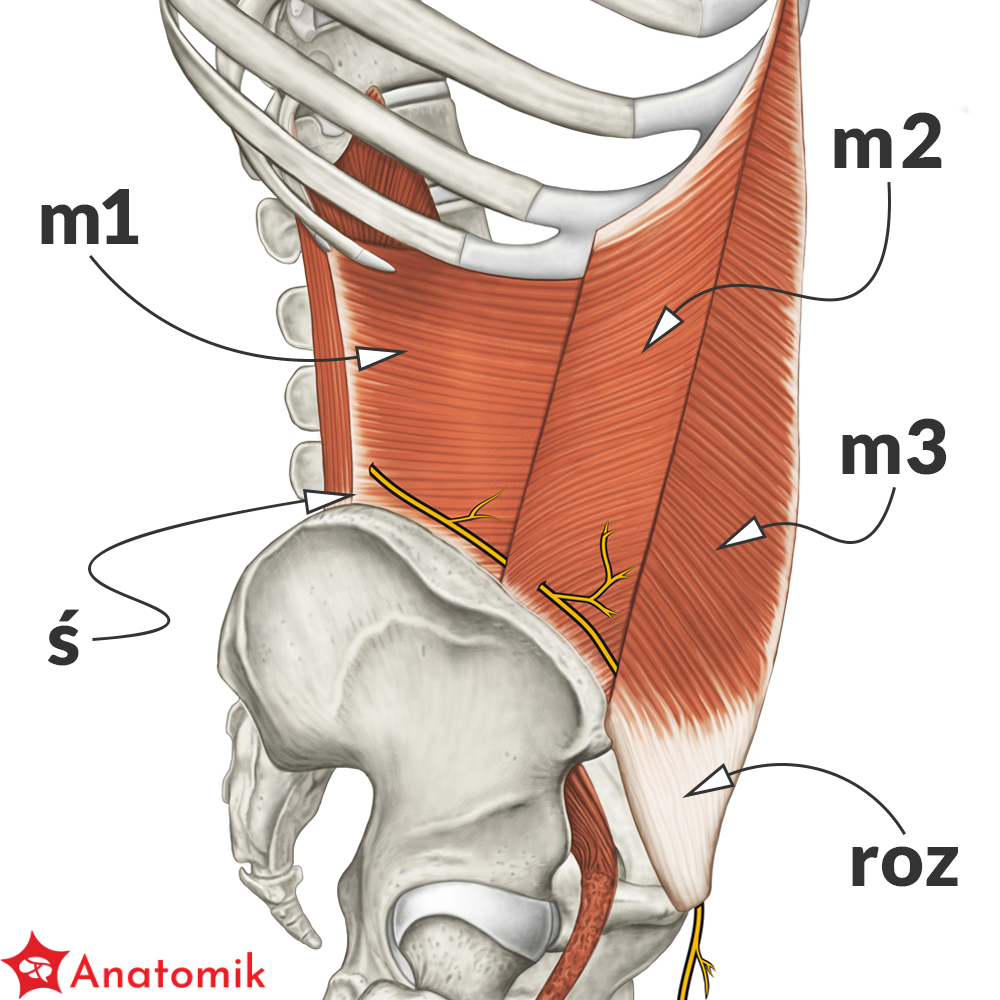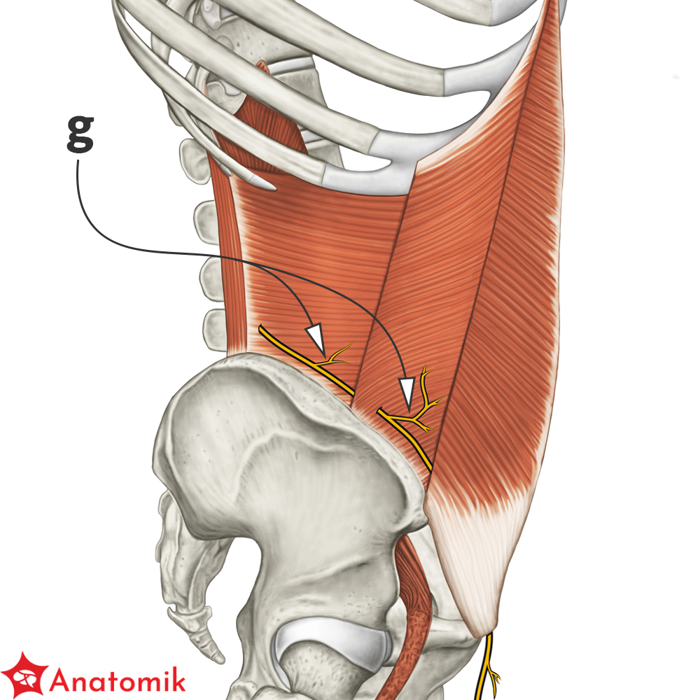 Gałęzie mięśniowe odchodzą od odcinka międzymięśniowego i biegną do mięśnia poprzecznego oraz obu mięśni skośnych brzucha.