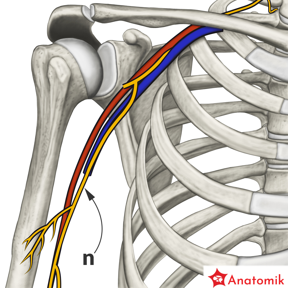 Odchodzi od pęczka przyśrodkowego splotu ramiennego