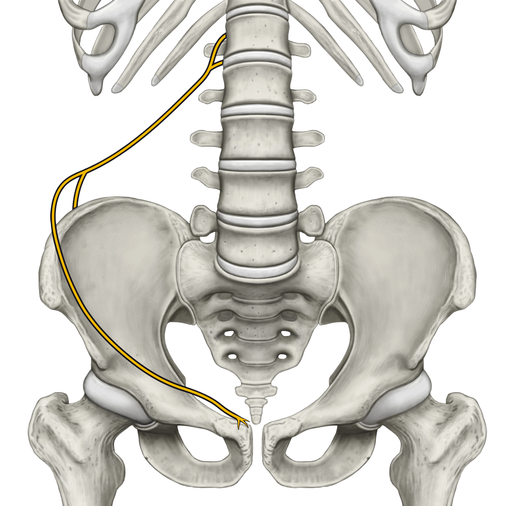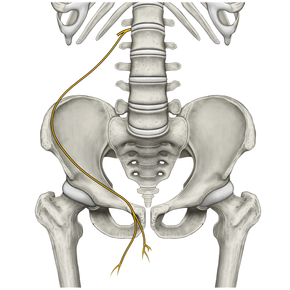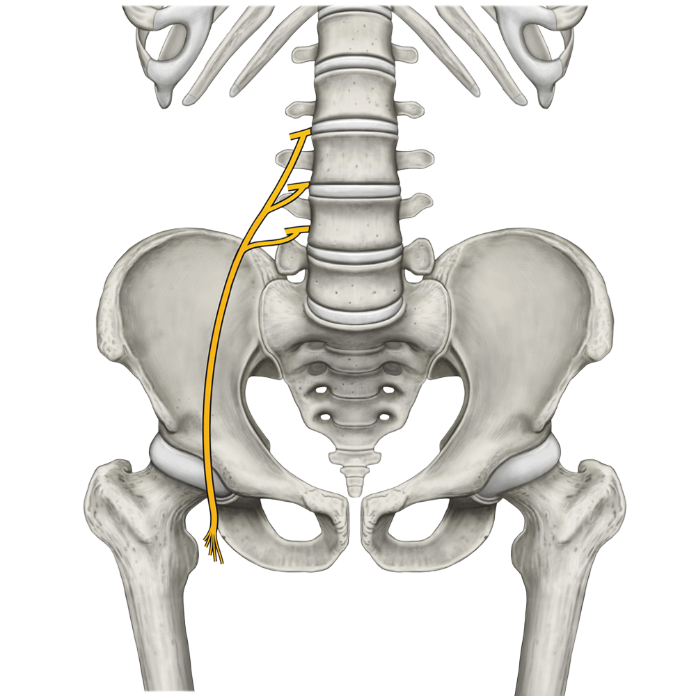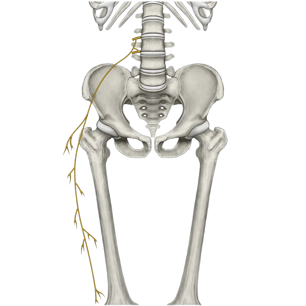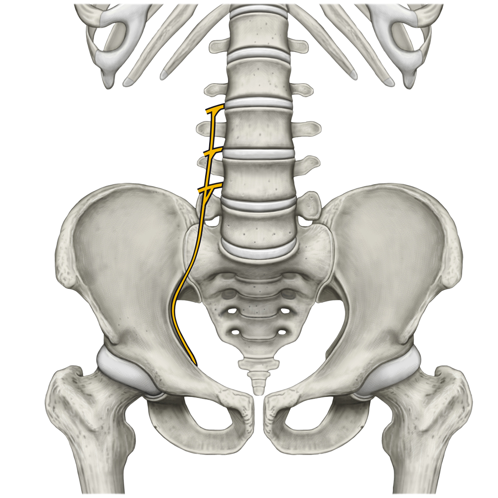 Splot lędźwiowy utworzony jest przez gałęzie przednie nerwów rdzeniowych L1-L4, do których dołączają od góry włókna gałęzi przedniej nerwu rdzeniowego Th12.